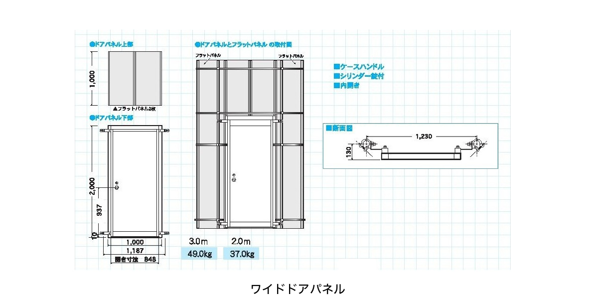 3m 幅1,000mm シリンダー錠付 49.0㎏ |